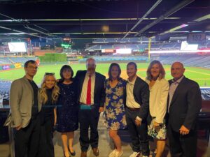 On May 30, 2024, Rubin Fortunato attorneys, Michael Fortunato, Michelle Liebesman, Melanie Osborn, Chelsea Hollenstein, and their significant others, attended the 69th Annual Acres of Diamonds Gala – the primary fundraiser for Temple Health. The event, hosted at Citizen’s Bank Park, featured a cocktail attire and sneakers dress code. 1,100 guests gathered under the stadium’s night lights to share food, dance to Philadelphia’s own DJ Jazzy Jeff, bid in a silent auction and cash raffle, and participate in a behind-the-scenes ballpark tour.